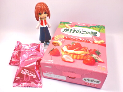 大好きなお菓子の上位に入るたけのこの里期間限定味と思われる「いちごタルト味」を、うっかり見つけてしまったので、買ってきました。甘酸っぱくて、サクサクで、大変美味しかったのですがやっぱりいつもの味の方が好みですねぇ。しかし、ピンクとクリーム色の組み合わせをしたたけのこが実際あったら、絶対に食べたくないと思います(笑)