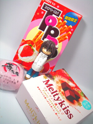 仕事帰りに、今年最初のお買い物をしてきました。と、いっても特別なものではなくいつものスーパーで、生活用品を普通に買って来ただけです(笑)そこでうっかり買ってしまったのは今、一番出回っている苺のお菓子達。期間限定という言葉に思いっきり釣られて、いくつか無駄に購入してしまいました。トッポのストロベリーミルク味。メルティーキッスのフルーティー濃いちご。苺大福、そしてここにはありませんが冷凍庫の中にピノのイチゴミルク。みんな大好きな物ばかり・・・(笑)とりあえず今日は苺大福をいただきました。明日からちょっとづつ楽しみながら消費していこうと思います♪楽しみっ!