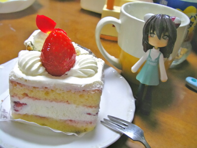 一月は私と妹の誕生日があるという理由で、今日の晩御飯後にケーキを食べました。今年最初のケーキは大好きなイチゴのショートです。ついでに晩御飯のメニューは、妹のリクエストですき焼き。締めはうどんで、全部おいしかったけどちょっと食べ過ぎてしまいました。明日はちょっと節制しようと思います。・・・と、思っている時に限って多く食べてしまう羽目になる不思議。