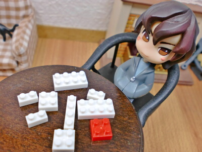 先日駅のコンビニで見かけて、つい買ってしまいました。コーヒー飲料「WANDA 朝のカフェオレ」のオマケ、『世界最小級ブロック nano block』が、あまりにも可愛かったのですよ!大きさは写真を見てもらうとわかりますが、ピンキーにぴったりサイズ!動物コレクションという事で、全6種類(ワニ・ヒヨコ・イヌ・キリン・ゾウ・イルカ)あってたくさん集めると、色んなブロック作品が作れます。とりあえずイヌを選びましたが、思ったよりも出来がよかったので、もう2~3種類買ってきてもよかったかも。でも、本気で別の作品を作るんだったら、もっともっと集めないとつまらないですよね~。中途半端はいかん。うん。まぁ、本当にちっちゃくて可愛いので、ピンキーと一緒に並べると和みます。ちょっと懐かしいひまわり組衣装を着せると完璧ですよね!今度やってみようっと♪