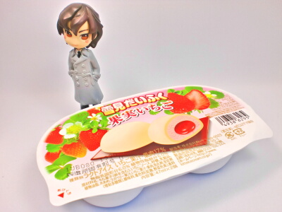 昨夜降った雪で、道路が凍っていた為、自転車はやめて歩いて駅に向かいました。かなり余裕を見て家を出たのですが、想像以上に地面が凍り付いていたので、ゆっくり慎重に歩いていたら結局いつも乗る電車には間に合いませんでした。田舎の私鉄なので、次の電車は40分後。当然仕事開始時間には間に合わないので、半日休暇を取る羽目に(泣)ちなみにうちの会社は、遅刻をすると自動的に半日休暇になるのです。これで今年度の半日休暇はあと1回ですよ。ああ、もったいない!で、会社に着いたら案の定、雪で会社に来られない人が続出しておりました。まぁ、車の人は仕方ないですよ。事故起こしたら危ないもんね。時々誤解されるのですが、群馬は南と北では雪の量が全く違うのですよ。北はメートル単位で積もる事もありますが、わたしの住んでいる南はほとんど雪は降りません。その為、雪にはめちゃくちゃ弱いのです。・・・すみません。それだけ言いたかっただけです。帰りはもうほとんど雪が残っていなかったので、明日は普通に自転車で行けそうです。よかったよかった。ただ、心残りがひとつだけ。ピンキーサイズの雪だるま作って、写真撮りたかったなぁ。そんな訳で(?)かわりに先日買って来た、果実いちごのゆきみだいふくと一緒に撮影してみました(笑)中のいちごジャムが甘酸っぱくておいしかったです♪