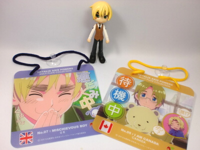 先日、ヘタリアアニメ絵コンテ集3を買ったついでに店内を見ていたら、アニメイトでも見かけなかったマルチプレートがあったので、好奇心でつい購入してしまいました(笑)ランダムで2種類入っているのですが、出たのはイギリスさんとカナダさん。『待機中』はともかく『悪だくみ中』のプレートはどう使えば良いのやら・・・(笑)普通悪だくみという物は、隠れてひっそりやるものでしょうに!ちなみにわたし、カナダさん結構好きです。あの、のんびりした所とか、ちょっと気が合いそう(笑)クマ二郎さんも可愛いよねぇv是非ともモフモフしてみたいー。