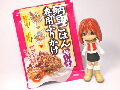 たまごかけごはん専用ふりかけに続き、納豆ごはん専用ふりかけも買ってみました。梅じそ風味のぱりぱりした食感がたまりません♪もしかしたら、たまごかけごはん専用ふりかけよりもこっちの方が好きかも・・・。