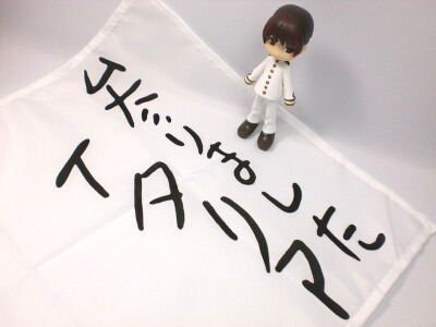 戯れで申し込んだヘタリアドラマCDの全員応募プレゼントの『参りました白旗』が届きました(笑)応募した事をすっかり忘れていたので、一体何事かと思ったのですが、実物を見てようやく思い出しましたよー。しかし、これを申し込んだ人って何人ぐらいいるんだろう?・・・人の事、言えないけども。まぁ、持っていればいつかどこかで使う時もあるでしょう。何かの勝負の時に降参の意を表す時とか・・・!(えええ)ところで今日はものすごく風が凄かったようですがWFに参加された方は、大丈夫だったのでしょうか?(汗)