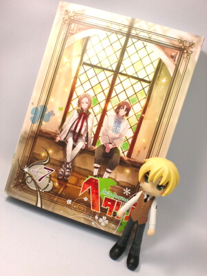 昨日買って来たヘタリアDVDを観賞しました。今回は40~45話入りなのですが、41話以外は兄弟話でした。40話はイギリス・アメリカ、42・43話はウクライナ・ロシア・ベラルーシ、44・45話はスイス・リヒテンシュタイン、といった感じ。この中で一番好きなのは、やっぱりスイスとリヒテン兄妹ですね~。ある意味面白いのはロシアさんの所かなぁ。そして初回特典のポー&リトのまるかいて地球CD。歌詞を見ると、二人の仲良しっぷりが大変微笑ましいですね。実はポーランドがアニメに初登場した回を、見逃してしまったので、この歌で初めて彼の声と喋り方を聞いたのです。自分の中のイメージでは、もう少し高い声だったのですがでも、違和感無く聞くことができました。何か可愛らしいなぁ。設定だとポーは名古屋の高校生の口調、という事になっている為、昨年名古屋に行った際、すれ違った高校生の話し声にうっかり耳を欹てて「これが生ポーランドの話し方・・・」と、にやにやしそうになったのは内緒の話です。スペシャルCDは、今までは声優さんや監督さんとの対談でしたが今回はパソコンのデスクトップアクセサリーに変わっていました。壁紙、スクリーンセーバー、時計があったので、とりあえず時計を日本さん仕様にして飾ってみましたよ(笑)