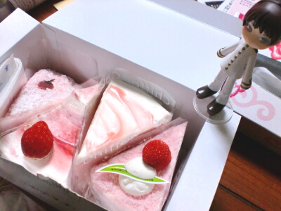 予約していたヘタリアアニメDVDvol.7を、引き取りに行ったついでに、ケーキを買ってきました。2月の誕生日の方々のお祝い用という事で、春色のケーキを選んだのですが、いざ箱の中身を見てみたら、あまりにも可愛らしくて思わず笑ってしまいました。お祝いするのはみんな男性なのに、これはどうかと・・・(笑)まぁ、本人達が食べる訳ではないから、別にいいかー(軽いな)そんな訳で、ギリシャさん日本さんスペインさん健一さん加藤さん、お誕生日おめでとうございます!!