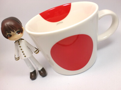 その存在を知った時から、ずーっと気になってはいたのですがマグカップは未使用品をいくつか持っていたので、あえて避けていたのです。でも、写真でしか見た事がなかったそれを、実際目にしたらどうしても欲しくなってしまったので買ってしまいました。それはフラッグマグ。国旗の絵柄が描かれているマグカップです。擬人化王国で出展している雑貨業者さん(で、いいのか?)で販売していたのですが、ほとんど売り切れ状態でした。かじろうて日本がのこり3つ残っていたので、思わず衝動的に購入。本当は見本のギリシャも欲しかったのですが、無いものは買えませんからねぇ(苦笑)そんな訳で、日本マグカップがとうとうわが家に上陸ですよ。そのうちギリシャやイギリスも増えそうで、ちょっと怖いです。万が一増えていたら、笑ってやってください(笑)