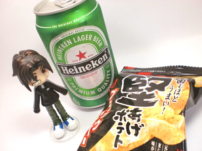 今日は春にしてはちょっと(いや、かなり)暑かったので晩酌(笑)にビールを飲んでみました。ふと思いついて、先日買ってあった「堅あげポテト」のブラックペッパー味を肴にしてみたのですが、個人的にこの組み合わせはそんなに好みではないという事が判明しました(笑)某眼鏡リーダーの、ビールに餃子はものすごく賛同出来たのになぁ…とか、書いていたら、じぶんのおっさん臭さに、ちょっと切なくなりました。とほほ。
