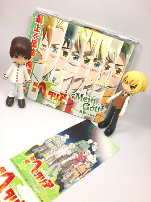 すでに2枚も前売り券があるというのに、更にプロイセンのCD付き特別観賞チケットを買ってしまいました。さっそくCDを聞いてみたのですが、何か普通にカッコいいサウンドとなっています。歌詞は俺様節全開ですが…(笑)そして歌だけでなく、CDジャケットイラストも素晴らしいです。ちょっとTAKE6(外国のアカペラグループ)のCDジャケットと似ている構図で、一瞬パロディかと思ったのですが、これは偶然でしょうね~。それにしても、こうして見ると日本さんの目って、他のキャラと比べると、明らかに違う系統ですよね。まぁ、そこも良いのですが(笑)