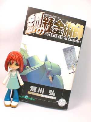 予約していた鋼の錬金術師25巻が届きました!本当に予測できない展開に、ドキドキしながらもあっという間に読み終えてしまいました。今回はホークアイ中尉とメイちゃんの漢前っぷりに大感動しました。やっぱり鋼錬の女性はみんなカッコいいですね!!マスタング大佐の腕に擁かれたホークアイ中尉の場面に、ちょっと泣きそうになりました。ああもう、この二人くっつかないかなぁ(笑)でも、一番のオトコマエは作者様ですよ!人伝に聞いた事なのと、公表されていない事なので具体的には書きませんが、本当に本当に尊敬しました。いや、尊敬というよりもはや崇拝レベルです…。話は変わりますが、先週RAGの大阪ライブに行けなかったかわりに、明日RAG友さんの好意で仙台公演に行ける事になりました!感謝!!そんな訳で、明日は仙台から日記更新しまっす♪