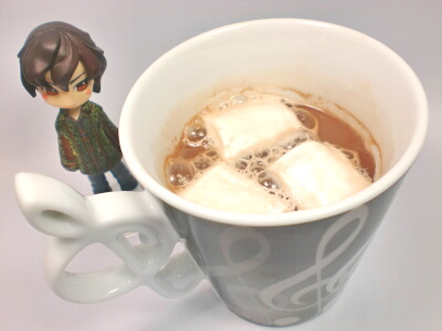 最近の自己流ココアの楽しみ方。熱々のココアに、マシュマロを数個入れて、程よくやわらかくなったそれを口に含み、舌の上でふわりととろける食感がお気に入りです。小さな幸せ(笑)ヘタリアで枢軸3人がやっていた、マシュマロを火であぶって、それをビスケットにはさんで食べる方法。とろけるマシュマロの味を知った今、間違いなく美味しいと確信したので、いつかやってみようと思っています!今週のヘタリアアニメ、期待はしていましたが、こんなに早くギリシャさんと日本さんの話が出てくるとは思っていませんでした。DVDになるまで待てずに、先ほど見てしまいましたがあああ、正に私の理想郷!!