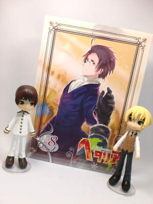 ヘタリアvol.8DVDの初回特典、オーストリアさんとプロイセンさんのまるかいて地球が、今までの中で一番衝撃的だったので、ちょっと感想を書いておこうと思います。まずはオーストリアさん。バックミュージックがオーケストラという事で、今まで無い雰囲気を楽しみにしていたのですが、これがまた、期待以上だったので感動してしまいました!ある意味、今までの中で一番癒し系かも(笑)途中の盛り上がりも素晴らしい!そしてプロイセンさん。こちらはオーストリアさんとは真逆の雰囲気。まるかいて地球のリズムを見事にぶち壊しています!!思わす「おいおいおい!(苦笑)」と突っ込んでしまいました。あー、でも、いかにもプロイセンさんらしくて、これはこれでいいんじゃないかと思います。それからスペイン親分のまるかいて地球を試聴しました。うおお、伴奏はスパニッシュなギターなのに歌詞がめちゃくちゃ可愛いです!このアンバランスさがすごく親分らしくていいですね☆あ、それと今週のアニメヘタリアは、待ちに待ったギリシャさんとトルコさんの日本争奪戦(違)!この三つ巴が大好きなので、本当に楽しみすぎて、見るのがもったいないです(笑)でも、明日あたり見ますよっ。