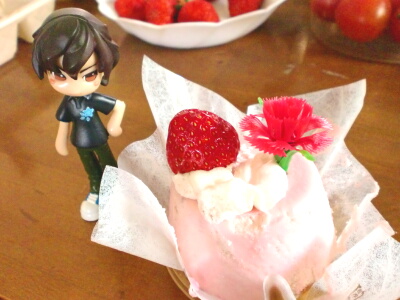 明日は母の日ですが、午前中天気が良くて、とても爽やかな気候だったので、サイクリングを楽しみつつ、プレゼントと生活用品の買い物にでかけました。毎年定番のカーネーション(今年は籠盛り)と、ケーキをオマケに買って、家に帰ってさっそくプレゼント。ケーキはショッピングセンター内の不二家で購入。本当は近くの美味しいケーキ屋さんで買いたかったのですが、母が不二家のとあるケーキが食べてみたいと以前言っていたのです。そんな訳でケーキ2種。写真は今日食べたケーキと籠盛りのカーネーション。母希望のケーキは、また後日アップします。話は変わりますが、本日は日丸屋先生の誕生日ですね!おめでとうございます!実はケーキはこの事があったので、今日買って来たなんて…言えなくも無い…かな。何はともあれ、ヘタリア3巻発売まで2週間を切りましたね!出来ればアニメイト限定版を買いたいけど…発売日には行けないので、買えたら幸運だと思っています。通販ではすでに予約販売は売り切れているんですよね。さすがだなぁ…。