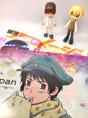 午前中は土曜出勤だったので、午後はついでにヘタリア3巻の予約をする為に高崎のアニメイトへ行ってきました。秘かにアニメイト限定版の予約を狙っていたのですが、すでに予約終了していたのか、特装版と通常版の予約カードしかなかったので、とりあえず予約は諦めました。23日にアニメイトに行く機会があるので、そこで限定版が買えなかったら、潔く諦めて特装版を購入しようと思います。まぁ、ひまさん書き下ろしのチケットの絵柄が見たかっただけなので、限定版に拘っている訳ではないんですよー。予約はしなかったけど、代わりにヘタリアグッズの新商品をチェックして、いくつか購入してしまいました(笑)今日買った物は、後日ぼちぼちアップします。帰りに遅めの昼食を買う為、パン屋に寄ったのですが、そこにロシアさんちのピロシキが売っていたので、思わず手を出してしまいました。家に帰って野菜ジュースと一緒に頂いたのですが、想像以上に美味しかったので(失礼だな)また買ってこようと思います♪