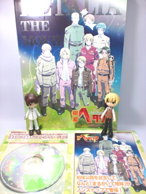 銀幕ヘタリアを見に行った時、パンフレットを買いました。もちろん「まるかいて地球ノンストップCD」付きの方です。パンフレットはネタバレの嵐なので、映画を見る前に見るのはおすすめできません。キャラクターデザインも載っていますが、宣伝大使のプロイセン、新キャラとして登場のアイスランドはともかくトニーは正直いらないんじゃ…(ダショーン!!)そして「まるかいて地球ノンストップCD」ですが、これはなかなか楽しいです。イタリア~プロイセンまでのまるかいて地球が、ずーっと繋がっているのですが、さすがにスペイン親分までは入っていませんでした。ちぇー。イギリス~アメリカ~フランスのお互い邪魔しあっているような繋ぎ方と、スイス~リヒテンシュタイン、ポーランド~リトアニアのセリフの繋ぎ方があまりにも秀悦過ぎて、思わず笑ってしまいました。個人的に日本~イギリスの繋ぎ目の所が好きです。好きなキャラが繋がっているという事もありますが、音楽的にも雅な和風なサウンドから、いかにも洋楽っぽいロックな流れに変化する瞬間がものすごく好みなのですよ~!あと、プロイセンのおれさまんじゅうも買って来たのですが、それはまた後日紹介します。