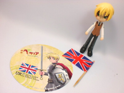 アニメイトでヘタリア商品を1000円以上買い物するともらえる例のコースター。シークレットの書き下ろしイラストがイギリス&日本というので、無理矢理1000円分の買い物をしてもらってきました(笑)思った以上の可愛さで、大満足!ひまさん、本当にありがとうございます~!!このイラストで、イギリスの作るスコーンは黒こげでは無く見た目はまともだけど、味はゴニョゴニョだという事が判明しました(笑)今度買い物する機会があったら、イタリア&ドイツ書下ろしをもらってこようと思います。こちらの絵もすっごく可愛かったですからねぇ。ヘタリアW杯シリーズ。てっきりイギリスさんのユニホーム姿は拝めないと思っていたのですが、ちゃんと描いてくれましたね!うおおお、可愛い!!さすがにユニオンジャックは背負っていませんでしたが(そりゃそうだ)それでも嬉しかったですv