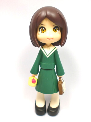 制服シリーズ。制服は嫌いじゃないけど、やっぱり多いと感じてしまうのは仕方の無い事で(汗)でも、これもPK028に続いてわりと好みかも。緑色なのがちょっと珍しくて良いですね。ワンピース風なのも可愛い♪しかしクリーム色のニーソックスはどうだろうと思います。スカートの丈が長いから、絶対領域すら見えないし!このニーソックスは他のミニスカートと合わせる方が良いかと。付属品は学生カバン+手提げバッグ。この二つは固定したままなので、二つをバラバラにする事はできません。もうひとつはお弁当箱。オーソドックスなタイプで、箸箱まで付いているのが細かい!こちらも取り外し不可能です。