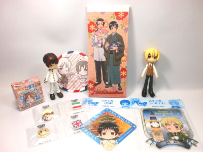 昨日の続き、ナンジャタウンヘタリアレポートです。まず入園して驚いたのは、ヘタリア関連商品が販売されているお店に、若いお嬢さんの列が出来ていた事。前回満腹で食べられなかったイギリスのフィッシュ&チップスが食べたかったのですが、あまりの長蛇の列に諦めました。ここの店は、他の店に比べて特に列が長かったような…?やっぱりステッカーのカッコよさと、人気者の日本、イギリス、アメリカが揃っているせいでしょう。仕方が無いので、まだ列が短めの店で買ってみましたよ。今回買ったのは『日本の露天風呂に入るイギリスプリン』と、日本さんと中国さんの『勝手にひらがな作んなッある!!ケーキ』の2種類。どちらもちょっと小さめだったので、続けてぺろりと食べられました♪その後、期間限定ヘタリアアトラクション『肉じゃが誕生物語』にチャレンジしようと思ったら…何と90分待ちとか!連れがいるならともかく、今日も一人楽しすギル私はすっぱり諦めました。この件はまた後日、という事で…。お次は『まるかいて地球ポン』いわゆる福引です。地球型のガラガラ(正式名称抽選器)を回して、出てきた玉の色で景品を選べます。一回300円で一人3回までの制限があったので、折角だから3回分やってみました。出てきたのは白白赤と一番景品が多い色でしたが、ちょうど欲しかった缶バッジ3つ(英日希)と引き換えられたので、大満足♪ここで体力と時間が切れたので、帰りましたが…また、猫カフェ299に行けなかったのが心残りですっ!でも今度は27日、299目的に来るのでその時に堪能しますよ。あああ、楽しみ!