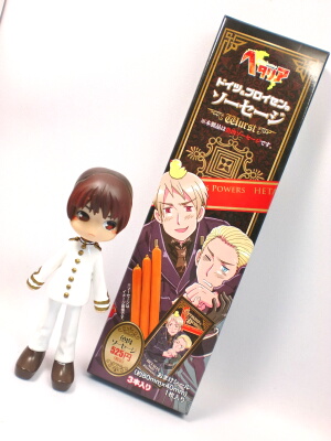 2枚目の前売り券で、銀幕ヘタリア2回目を池袋で見てきました。川崎の映画館はかなり空いていて、ちょっと寂しい位でしたがさすが池袋は違いますねー。私の見た回は、ほぼ満席だったようです。その為か、異様な盛り上り方でした。予告編の某スパイ映画の「ロシア」「アメリカ」「ソルト」という単語で大爆笑が起こった時は、二重の意味で笑ってしまいましたよ。こんな事、普通の映画では、絶対にありえませんよねぇ(笑)話は前後しますが、映画で前売り券と指定席券を引き換えた後、まだ一時間程時間があったので、池袋アニメイトのヘタリア展示イベントを見に行きました。プロイセンのぬいぐるみを買おうかどうか迷いましたが、結局何も買わずに、展示してあった撮影可能のドイツの執務机とイタリアのトマト箱、そして銀幕ヘタリアパネルを写真に収めただけで撤収してきました。映画の後、前回まだ始まっていなかったイベント参加の為にナンジャタウンへ向かいましたが、ここも凄く混んでいてヘタリア人気をつくづく再確認。ちょっと長くなりそうなので、続きはまた明日書きます。恐れ入ります、すみません。