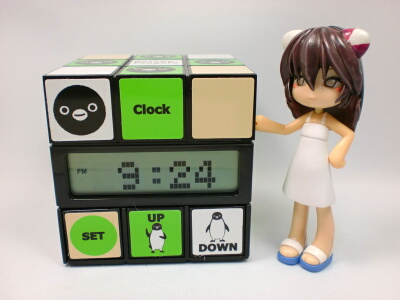 先日もらったビューサンクスプレゼントのSuicaペンギン時計。これ、使い始めてわかったのですが、想像以上に便利ですよ!まずデザインは、ルービックキューブ型で上の部分だけ回転できるようになっています。この時計は他に、カレンダー機能、温度計機能、アラーム機能が付いていて、その上の部分を回す事により、機能を切り替えられるのです。あまりにもその機能切り替えが楽しくて、無駄に温度を見たりして堪能してしまいましたよ(笑)いやぁ、いい物をありがとうございます。多謝!