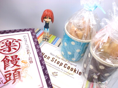 昨日に続いて、RAG FAIRのNSHを見てきました~。内容はいつものように音語りブログにて。…で、今回のライブグッズなのですが、パンフレット以外はみんなお菓子だったのです。お饅頭をクッキー2種。クッキーは普通の箱入りと、メラミン樹脂製のカップに入った、フォーチュンクッキーです。フォーチュンクッキーには、メンバーのお言葉入りの紙が入っています。母にお土産として渡したら、グッズとは全く気付かず普通にお仏壇に供えられました(笑)いや、まぁいいんですけどね!お饅頭には「東京土産」とか書かれているし、間違ってはいない。うん。