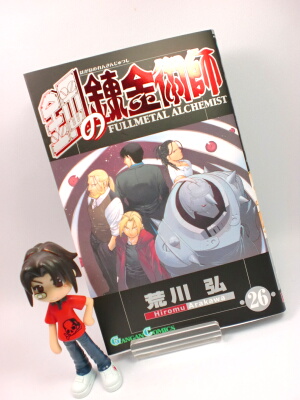 ちょっと前に発売されていたのを知らなくて、Amazonで他の本を買うついでに、一緒に注文しました。最終巻一歩手前というせいか、ものすごく気になる所で終わってしまったので、思わず悶えてしまいました(笑)ここまで読めばわかると思いますが、私はコミックス派なので、未だに最終回は読んでいないのですよ!その為、世間で鋼錬が最終回フィーバーを起こしていた時ネタバレを見ないように必死でした(笑)今までコツコツとコミックスを一冊一冊買っていたのに途中をとばして最終回だけ見るなんて邪道な事、出来る訳ありません。うむ。そんな訳で、知人友人さんは私の前で鋼錬最終回のネタバレ話はしないで下さいね~。まぁ、今更感もありますが。最終巻発売は11月。最終回を迎えたのに、あと3ヶ月きっちり待たなくてはダメなんですね。むーん。ところでガンガン応募者全員プレゼントの、エドの鞄型コミックBOX。ものすごくツボを突かれたので、ちょっと今月号のガンガン買ってこようかと思っています。