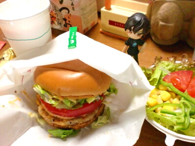 待ちに待った夏休みです♪今年度から諸事情で会社方針ががらりと変わったので、今までと夏休みの取り方が変わって社員は必ず9連休取らなくてはいけなくなったのです。まぁ、そのうち3日は有給を無理矢理使わされるのですが。何はともあれ、せっかくもらったお休みなので、有効活用したいと思います。…とは言っても、ほとんど趣味に費やすだろうけども!(笑)とりあえず8日と9日はRAGライブで赤坂にお泊り。そして13日は夏祭典という外出予定です。それ以外はずっと家に引きこもって、とある作業をします。どんな作業なのかは、また後日。話は変わりますが、今夜は父がお出かけなので、手抜き晩御飯として、モスバーガーを買ってきました。私はもっとあっさりしたものが食べたかったのですが、母が「何食べたい?ハンバーガー?ハンバーガー?それともハンバーガー?」…と、洗脳してきたので、乗ってみました(笑)
