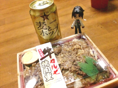 正月休みも終わり、初仕事でした。3時までは普通に仕事をして、それから会社の食堂で乾き物と発泡酒とペットボトルのジュースやお茶で慎ましく新年会をしました。そして何故か牛カルビ弁当付き。さすがに3時に食べるのは無理なので、お持ち帰りですけどね☆このまま終業時間までだらだら飲み食いするのかと思ったら、意外にも早く帰って良いというお達しが出たので、とっとと家に帰ってきました(笑)空が明るいうちに家に帰る事が出来るのって、本当に素晴らしいですね!