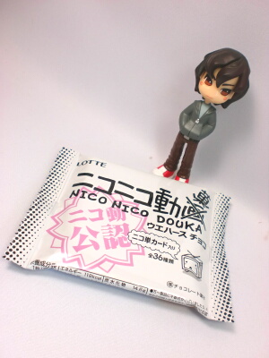 何やらニコニコ動画公認のお菓子が出ていたのでちょっと買ってみました。中味は普通のウエハースチョコでしたが、オマケとしてニコ単カードというのが入っています。ニコニコ動画で使われている単語の講座カードですが見ても「ふーん…」いう感じです(笑)まぁ、ネタにはいいんじゃなかと思われ…。個人的に、ニコニコ動画は一度見始めると時間を際限無く吸われるので、あえて滅多に見ないようにしています。暇つぶしにはいいのですが、忙しい時もついつい見てしまうのが恐ろしい…!
