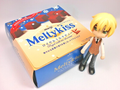 冬になると、何故かチョコレートが食べたくなります。…と、いう事でコンビニで見かけて買ってきてしまいましたよMeltykiss。このチョコレートは色んな種類があるので迷いますね。とりあえず今回はロイヤルミルクティーとあと一種類選びました。もう一つは、また後日。口に入れるとふわっととけて、一瞬ココアパウダーが存在を主張します。が、すぐにロイヤルミルクティーの風味が口の中に広がります。そんなに甘くはないので、甘いもの好きの人にはちょっと物足りないかもしれません。上品な甘さと、紅茶が好きな人にお勧めします。
