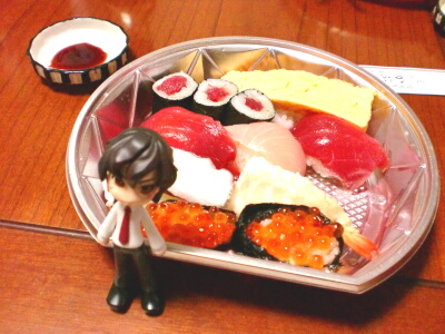 父が出かける時、何故か晩御飯に家族の分の寿司を買ってきてくれました。何やらゴルフの景品で、美味しいお寿司屋さんの商品券をもらったので、それを使ったらしいのです。何にせよ、今年2度目の寿司(1度目は会社の食事会)が堪能できてちょっと嬉しかったです♪寿司といえば、もう2~3年ほど回転寿司に行っていないので、ちょっと最近行きたくて堪りません。なので、回転寿司のCMやチラシを見る度に「行きたい」と言っているのですが、なかなか上手くいかないのが悔しいです(笑)何か、回転寿司のお一人様って、ラーメン屋よりも敷居が高いような気がするのは私だけでしょうか?