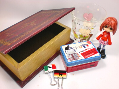 お友達のたれにゃんこさんから、誕生日プレゼントをいただきました!古い本の形をした小物入れと、国旗クリップ、そして可愛い猫柄のグラス。どれも私のツボをぐりっと押さえています(笑)特に国旗クリップは、国旗デザインに黒猫があつらえてあって、ものすごく可愛いのです!きゅんきゅんです!!見ているだけで幸せ…v 本当に感謝の気持ちでいっぱいです~vありがとうございました!!
