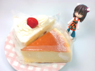 風邪もほとんど治ったので、会社に行って来ました。力仕事があったので、正直ちょっときつかったのですが何とか一日無事に終わりました。で、何故かお土産(?)に箱入りケーキを頂きました。別にお見舞い品という物ではなくて、全従業員に振舞われたのです。よく事情はわかりませんが、同系列の会社から挨拶みたいな形だそうです。うーん、よくわからん!何はともあれ、断る理由は無いのでもらいました。ちなみに種類はイチゴのショートケーキとチーズケーキ。一番オーソドックスな2種類でした。今日中に食べないと傷んでしまうので、二つとも食べたら晩御飯どころじゃありませんでした(笑)ケーキだけの晩御飯はどうよ?!という事で、フリーズドライのスープも食べましたが、間違いなく栄養は偏ってしまいましたね。