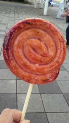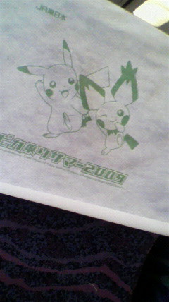 写真は今日乗ったポケモン新幹線の外側と内側と、うずまきウインナー(笑)