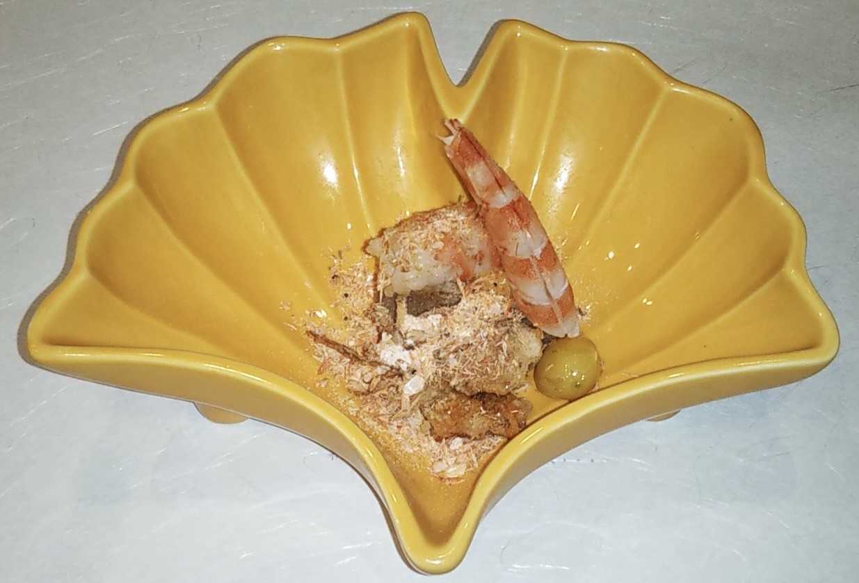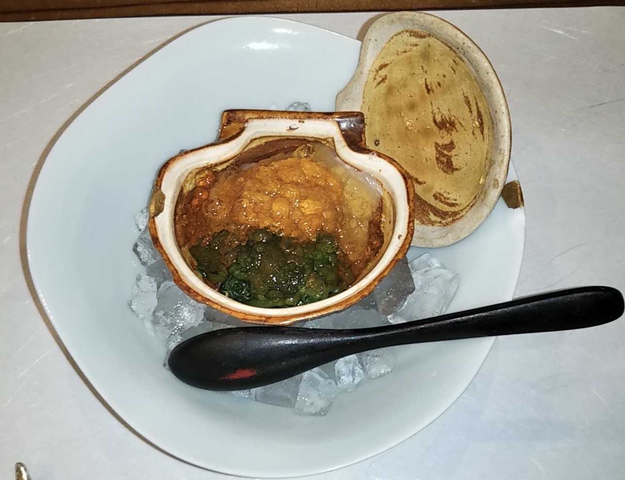 タラの白子と海藻、百合根の入ったとろみのある温かいスープ