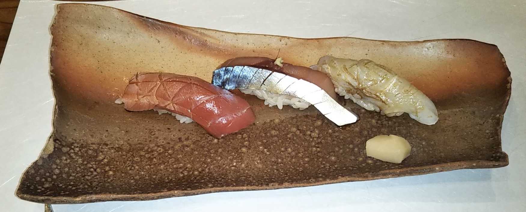 漬け大間鮪、酢じめの金華鯖、明石鯛で全て味付