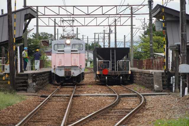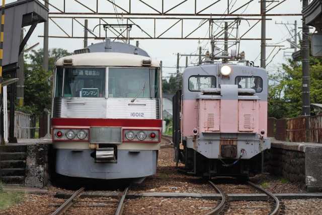 富山行きの 交換車両はなんと 旧 西武特急のレッドアロー普通 電鉄富山行きで 並びに乗客下車は 2人だけこちらに ピース サイン(笑そして デキの 機回し反対側に発車時刻も ままならず更に伺う#今日この頃です。(^_^)v^^。