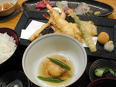 今日は、ルピナスウエイの管理人さんのかすみさん、主催のオフ会に・・ランチ会は、12:00スタ-ト、前菜のお魚、お肉のお造りや、酢の物、煮物、天ぷら、ご飯、お吸い物・・これで、2000円は、安い!!管理人さんが、特別に店にお願いして、予算どうりにしてくださったそうです。ありがたや・・・・大阪北新地の、日本料理屋さん「本家熊谷八(ほんけ くまがい はち)」です。