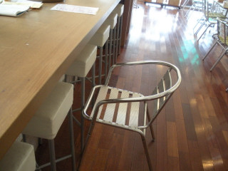 無くって、奥に入っている椅子とカウンターの間に、必死で膝を