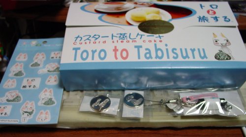 トロ仲間(笑)の、社長@群馬から昨日お荷物が届きましたいつもどうもどうもm(__)m一番のメイン商品は、写真に写ってないんですがトロと旅するのDVDです♪青森では、フジテレビ系列の放送局が無いので岩手の電波が届く八戸方面と、北海道の電波が届く下北や津軽半島方面以外の地域でフジの放送を見るためには1、数週間遅れで放送されるのを待つ2、青森市内だったら、ケーブルテレビに加入する3、諦める(爆)これしかありません(o_ _)oバタッしかし・・・どう考えても、めざましテレビは数週間遅れで放送されるわけは無く(爆)ケーブルテレビも、微妙にエリア対象外(o_ _)ノ彡☆ばんばんということで、諦めるという選択肢しか残ってないのですなので、オンタイムで見ることは諦めて・・録画してもらったのを1年分とかまとめて送ってもらってます(^^;しばらくまた楽しみが増えたわ♪で、付属したトログッズですが・・・カスタードケーキと去年のお台場冒険王で発表になったやつ?のストラップとシールと、トロじゃないガシャポンのメダル(爆)・・・メダルはトロ以外はいらないからあげるというやつ?ヾ(ーー;)ォィカスタードケーキを開けてみました♪パッケージはかわいいです♪中身は・・・普通の何の変哲も無いスポンジにカスタードが入ったお菓子でした(o_ _)oバタッ 焼印とかついてればいいのに(-。-) ボソッということで、ご機嫌です(笑)