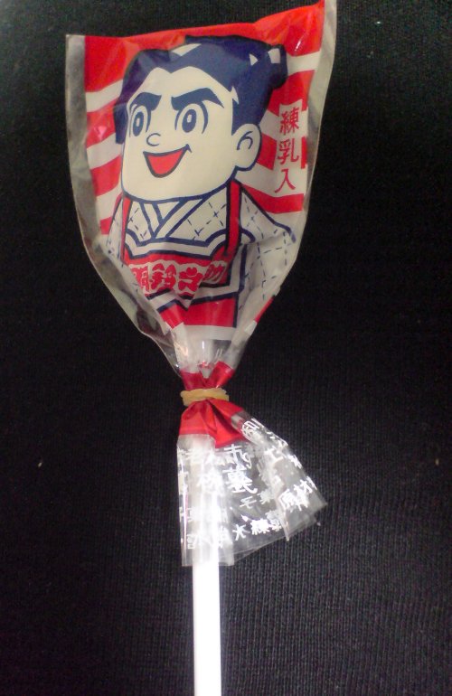 昨日、ショッピングセンターに行って久しぶりに駄菓子やさんに寄ってみました♪(テナントで入店してるんです)いやぁ、懐かしいのがたくさん♪お小遣い握り締めて、近所のお店や駄菓子屋に行ったの思い出しますね~それにしても、σ(^^)が子供のときに10円だったものが今は21円とか32円になっているのがちょっと許せず、気分的に買うのを断念したものが数種(爆)そりゃ数十年経ってれば値段も変わると言われればそれまでですがで、とりあえずσ(^^)がチョイスしたのがこれ赤胴鈴之助が書いてある飴(o_ _)ノ彡☆ばんばん知ってます?中身はこんな、ストローに飴をくっつけてあるんです(^^;味は・・・たんきり飴を、もう少しコクをなくして粉っぽくした感じ?何年ぶりに食べたんだろう♪と喜んで食べていたら・・・最近ご飯食べると痛くなっていたところの歯にかぶせていた銀が取れて飴にくっついてました次の歯科受診、来週の月曜日だったのに(p_q)エーン今日電話してみようっと