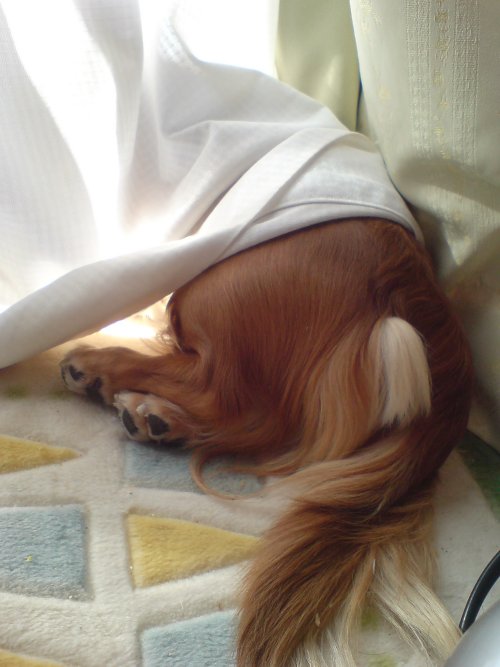 履き出し窓からお外を見るのが大好きな、うちのお嬢天気も良いのでお昼寝タイム・・・・と思ったら、なんか寝姿が変?あのぉ...お尻だけカーテンからはみ出てますがヾ(ーー;)ォィなんとなく気になったのでカーテンをめくってみました(爆)ちょっとご機嫌斜めでした(^^;安眠妨害しちゃったよっ♪あ~~いとぅいまてぇ~~~ん♪(笑)