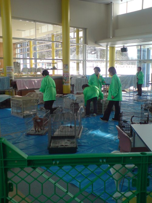 先日のブログに書いたとおり八戸のブリーダー廃業に伴うワンコの譲渡があるというので・・うちではかふぇおれで手一杯なのでもう飼えないけど支援物資でもと思って、昨日の午前中に動物愛護センターに行って来ました譲渡会は13時からとのことでしたが、譲渡希望でもないしと思って10時半頃行ったんですけど・・すでに人だかりが(゚0゚;)ワンコもすでにフロントホールにたくさんいて、奥の洗浄ルームでも、順番に体を洗ったり毛を刈ったりしてましたボランティアスタッフの方がたくさんいました♪お疲れ様ですm(__)mとりあえず、かふぇおれが使わない胴輪1つと、正月の福袋に入っていたペットシーツとドッグフードを差し入れてきました~ボランティアの方のお話だと、1日目のほうが状態の悪いワンコが多かったなぁ~~というお話でしたが、結構引き取られていったようでよかったです(^^) ところで、せっかく動物愛護センターに行ったのにこのような状態だったので・・まったくお散歩にもならず、抱っこばっかりで不満たらたらなのが、うちのかふぇおれとりあえず、ワンコがたくさんいても滅多に外では吠えないのでいろんな方に「おりこうさんね~~」とほめられるのですがただ単に外面が良いだけです(爆)結局全然お散歩も出来ず、いろんな人に頭や体を(*--)ヾ( ̄▽ ̄*) ナデナデされたのもご不満な様子(苦笑)うちに帰ってからは・・・ふてくされてます(苦笑)