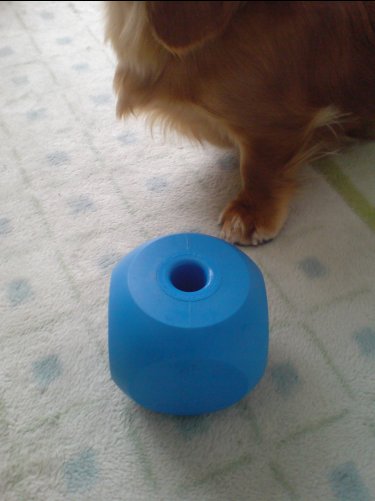 去年8月のブログにも書いたことのあるワンコのおもちゃでバスターキューブという知的玩具です♪↑特別出演、かふぇおれ(笑)これ、穴の部分におやつを入れて適当に回してからドウゾ♪( ´ー`)_●とあげると、すごい勢いで転がします♪転がせばジャーキーが出てくると思っているので中身がなくなっても、一生懸命転がしています(o_ _)oバタッさすがに中身がもう無いんだと気づくと、くわえてσ(^^)や旦那のところに持ってきてボトッと床に落とします(^^;もっと入れろってかヾ(ーー;)ォィそんな甘い親じゃないわよ((( ̄へ ̄井) フンッ!と思っていると旦那がまた入れちゃったりしてます(o_ _)oバタッ甘い親・・・・(-。-) ボソッ