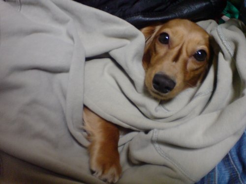 σ(^^)の脱いだ服に乗っかって寝るのが好きな、うちのかふぇおれ昨日は洗濯したばかりのジーンズの上に寝ていたので脱いだばかりのトレーナーを上からかけてあげたところ・・・旦那が、なんか知らないけどまた包んじゃってます(爆)以前も・・このように埋めちゃってます(^^;でも、嫌じゃなさそうなので・・・ま、いいか(o_ _)ノ彡☆ばんばん