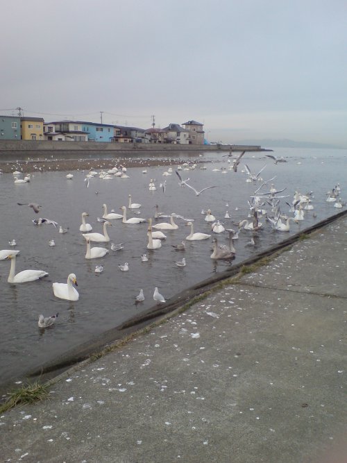 いろいろあって、八戸までドライブしてきました途中、青森市内の野内川のところを通ったので白鳥さんを見るのに一旦停車(^^;右奥は、海です♪陸奥湾ですね鳥さんの好きな、かふぇおれも旦那のジャンバーに入れられてカンガルーさん状態でワンワンすることもなく静かに見てましたその後・・平内町のオレンジハートでおにぎりと焼鳥を買いブランチ(!?)で、目的地その1のイオン下田ショッピングセンター♪ファイテンショップから、今月誕生日おめでとうのハガキが来てたので持っていったらお弁当箱くれました(爆)ついでに、これを買いました(^^;このファイテンショップ、行くと必ずチタンテープを惜しみなく辛いところに貼って、ローションを塗ってくれます♪いつもは肩と首にやってもらうんですが、今日は腰にしてもらいましたで、ファイテンショップを後にして1階に下りてみるとドラえもんと握手ショー開催中(o_ _)ノ彡☆ばんばん目的地その2のショッピングセンターラピアでは先月、6号のクリスマスケーキを2個いただくきっかけとなったゲーセンに行き(爆)いつもどおりカレーを食べて帰るというお約束パターン(笑)ここのポレポレというカレーやさん、インドの方が作ってる本格的インドカレーで、おいしいんです♪今日は休日ということで、お昼のバイキングをやってました!・・・お約束で山ほどお代わりを(o_ _)ノ彡☆ばんばんということで、また食べすぎ胃もたれ中(苦笑)