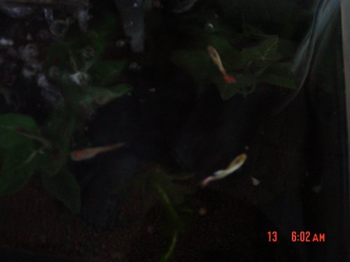 グッピーの赤ちゃんが生まれて1週間経ちました父母の皆さんに似て、食欲旺盛です(笑)大きくなりました~♪全部で3匹いるんですが、1匹は下のほうで遊んでました(^^;上から撮ってるので見えませんけど、背びれもはっきりしてます♪成長が楽しみ(⌒^⌒)bうふっ