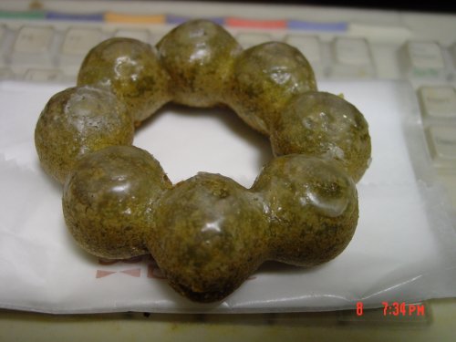 来週健康診断だから、おやつ類は自粛していたのに旦那がミスド100円なので、気を利かせて大量購入してきました( ̄▽ ̄;)今回の目玉(誤)は、新製品のポンデ抹茶です旦那曰く「色がのり弁に入っている竹輪に似てる」ん~、そう見えないこともないです(爆)せっかくなので食べてみました(o_ _)ノ彡☆ばんばんん~~~・・・・・オールドファッション抹茶のほうがおいしい!(苦笑)実は、ポンデ抹茶アズキもあったんですが写真撮る前に食っちゃいました(>3