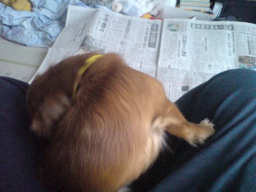 最近、やたらとお膝に乗りたがるうちのお嬢(^^;頼むから、新聞見せてくれませんか?(苦笑)っつーか、お膝に乗って「背中痒い!」ってまん丸になるのやめてもらえませんかヾ(ーー;)ォィ