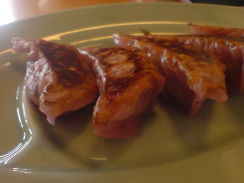 昨日メール更新したんですけど・・・インプレッサを見たついでに、道の駅つるたに行ったんですよで、ここの道の駅はスチューベン商品がたくさんあって・・・ジュースやソフトクリームは、まぁ無難なところですよね(^^;スチューベンを練りこんだ、そうめんとか大福とかいろんなのがありますここの中にある食堂がおいしいので、たまに入ってみるんですが今日はあるものに惹かれたので入ってみました(笑)それがこれ♪色がわかりにくいですが、皮が紫色の餃子(笑)昨日のメール更新した写真の現物です(^^;味は・・・スチューベンの味は全くせず、純粋においしい餃子でした♪で、σ(^^)の大好物のこちら↓冷やし中華です♪ 毎日冷やし中華でもいいというくらい冷中大好き(^^)良く見てみると、麺が・・・・スチューベン練りこみで、こちらも紫色(笑)あ、ちなみにこの画像は旦那の冷やしタンタン麺です(>3